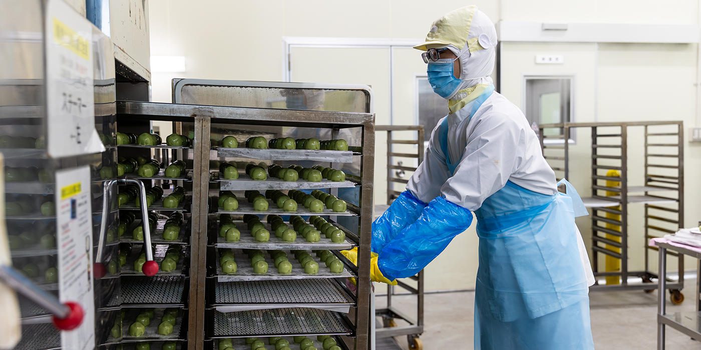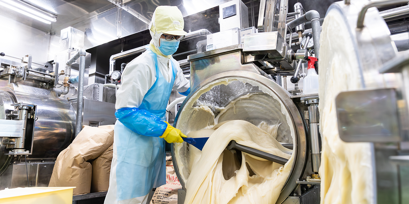 和菓子の生地にあたる餅生地の仕込みを、原材料の計量から担当して行っています。また、生産ラインの立ち上げのほか、新商品の試作をはじめ商品開発に関する業務も一部担当しています。